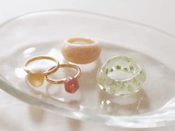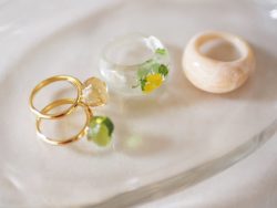 オリジナルドライのお花を閉じ込めたリングとマーブル模様のリング、2つをお作りいただくことにしていますが、